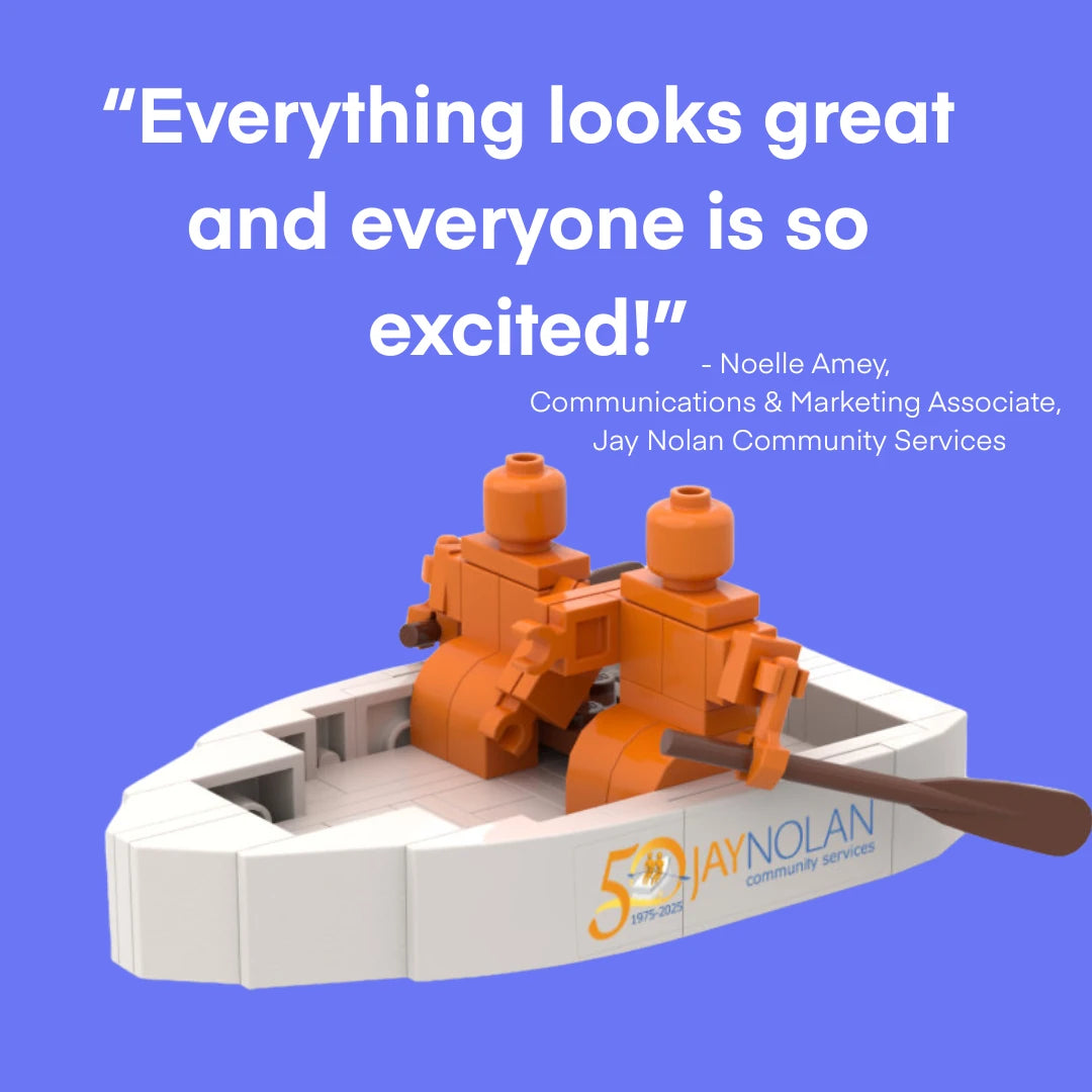 Jay Nolan Community Services requested custom Playwell Bricks sets that brought their logo to life. Along the way, Jay Nolan Community Services confided that the rowboat in their logo is more than just a logo, it’s the philosophy behind the work they do to support atypical individuals. “We set in the boat with them,” their website says, “we paddle alongside them, on their journey.”
