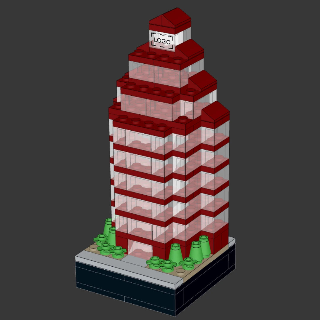 Playwell Bricks CEO Jason Pyett designed this set himself. “These were created as a lead generation tool,” Jason explains. The contact told him that they wanted a set that looked like an office building and left the architectural details to his creativity. Jason has several architectural sets in his portfolio, and he dug right in.