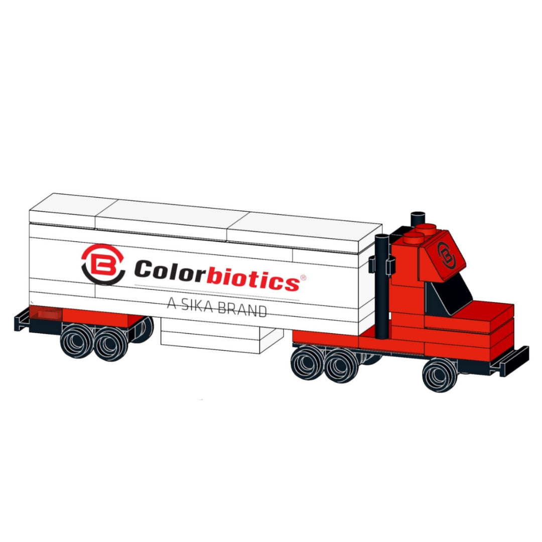 Since Colorbiotics quite literally delivers colour to their clients, a custom Playwell Bricks set of a Colorbiotics delivery truck became the idea that stuck.