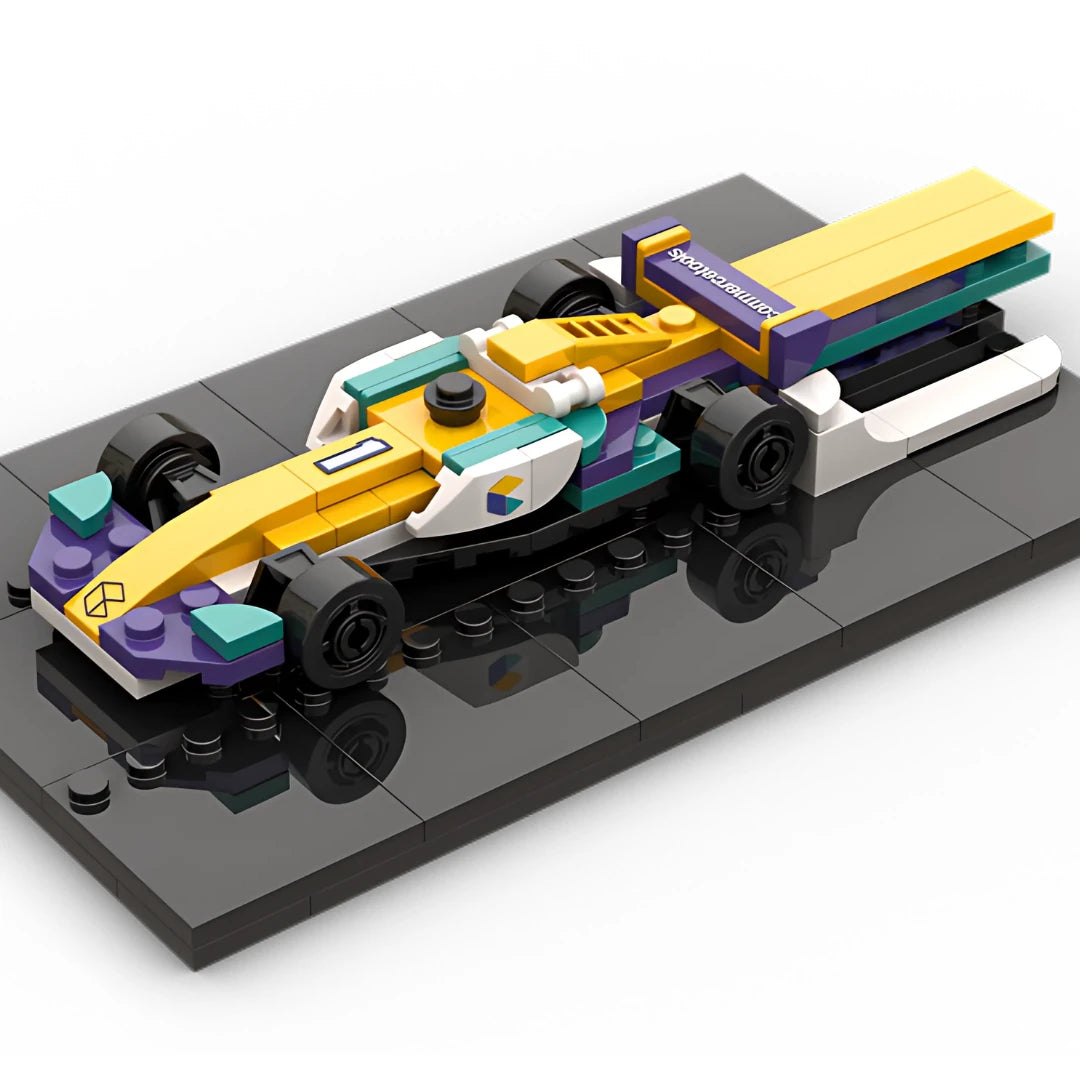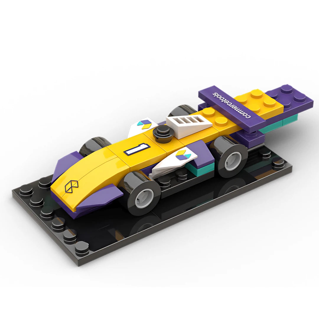 Playwell Bricks designer Eric Dubois Yang stepped into the driver’s seat with a bold concept: an F1-style race car designed in commercetools’ brand colors, complete with logo decals and clever details.