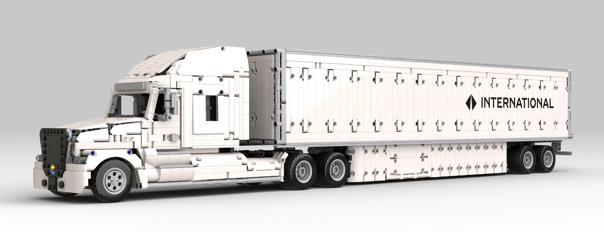 Now the team needed to give the original design an overhaul to look like International’s 2025 LT series and change the aesthetics to represent the new brand. Playwell Bricks designer Eric Dubois Yang handled the set changes and Kostik Poloskin took care of the graphics, redesigning this set into a sleek International.