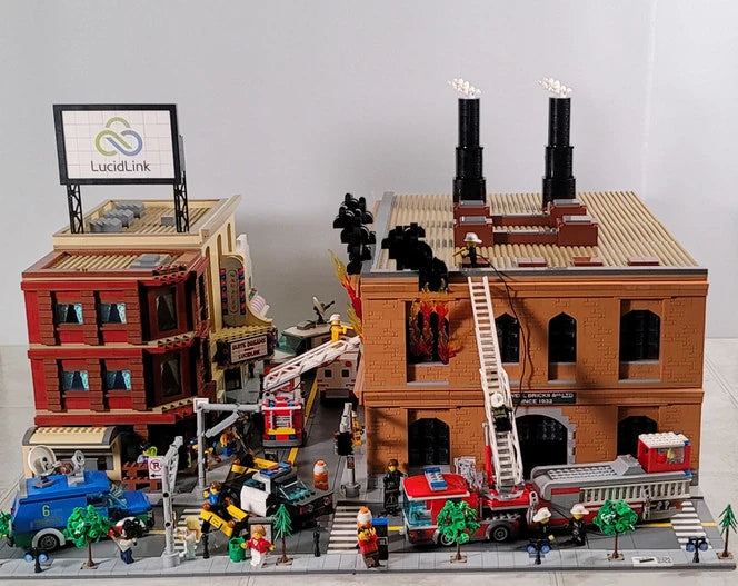 This project was an emergency both in brick form and in reality! This custom set made with, in part, genuine LEGO® bricks display model was created for Lucidlink, to be showcased at the NAB 2022 show in Las Vegas. There was one catch, we had to have it designed, built, glued, and shipped within three weeks!
