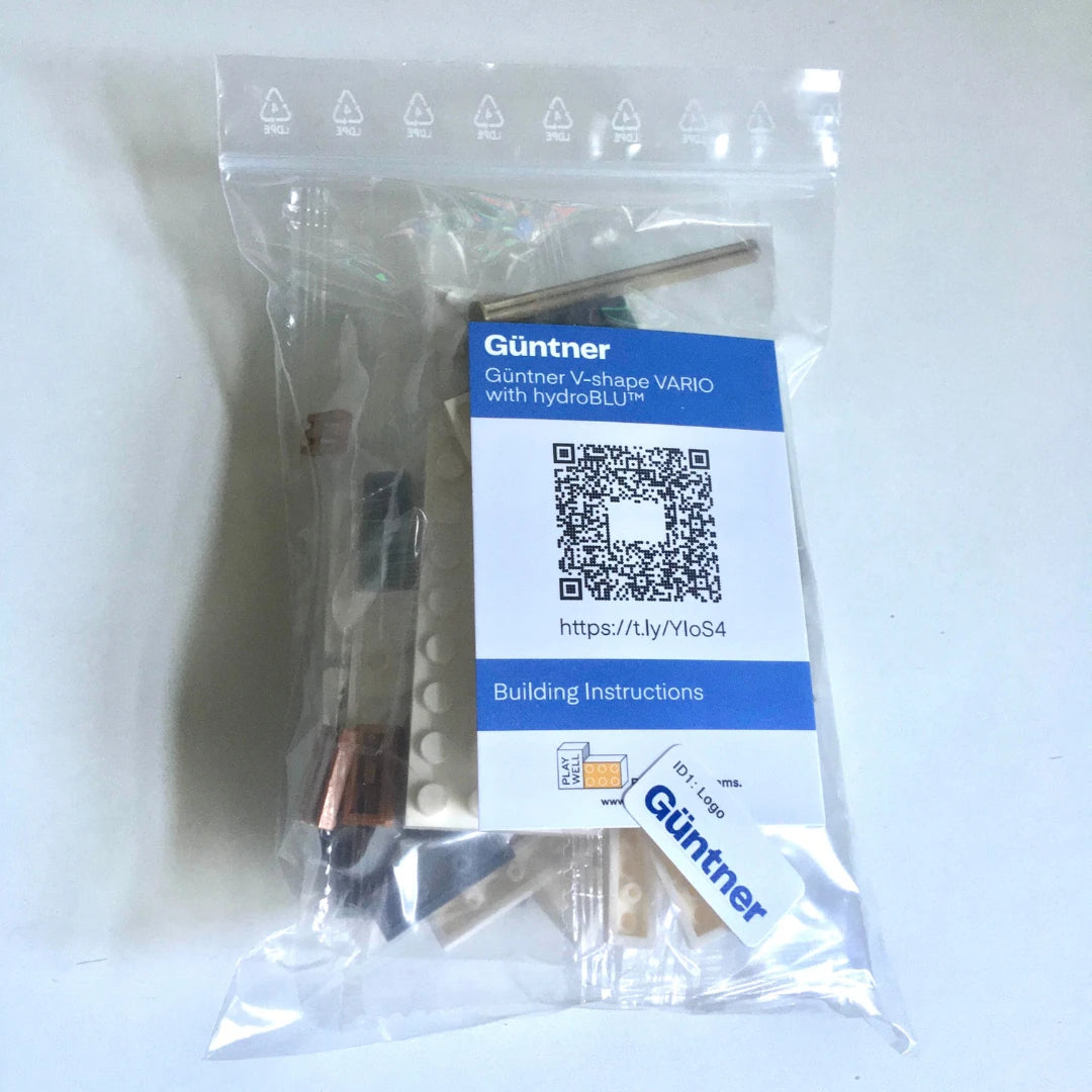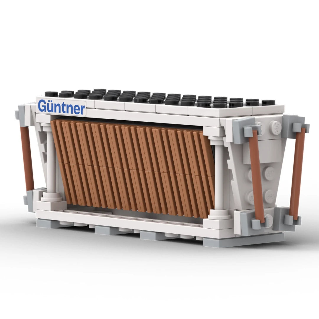 Güntner is a major player in the industrial AC and cooling solutions sector, and that means maintain a presence at numerous trade shows and conferences. They’ve certainly seen a lot of conference swag come and go in this capacity, so when Güntner called Playwell Bricks to see about a custom branded bricks set of the bestselling V-shape Vario unit, the team got busy with the design.