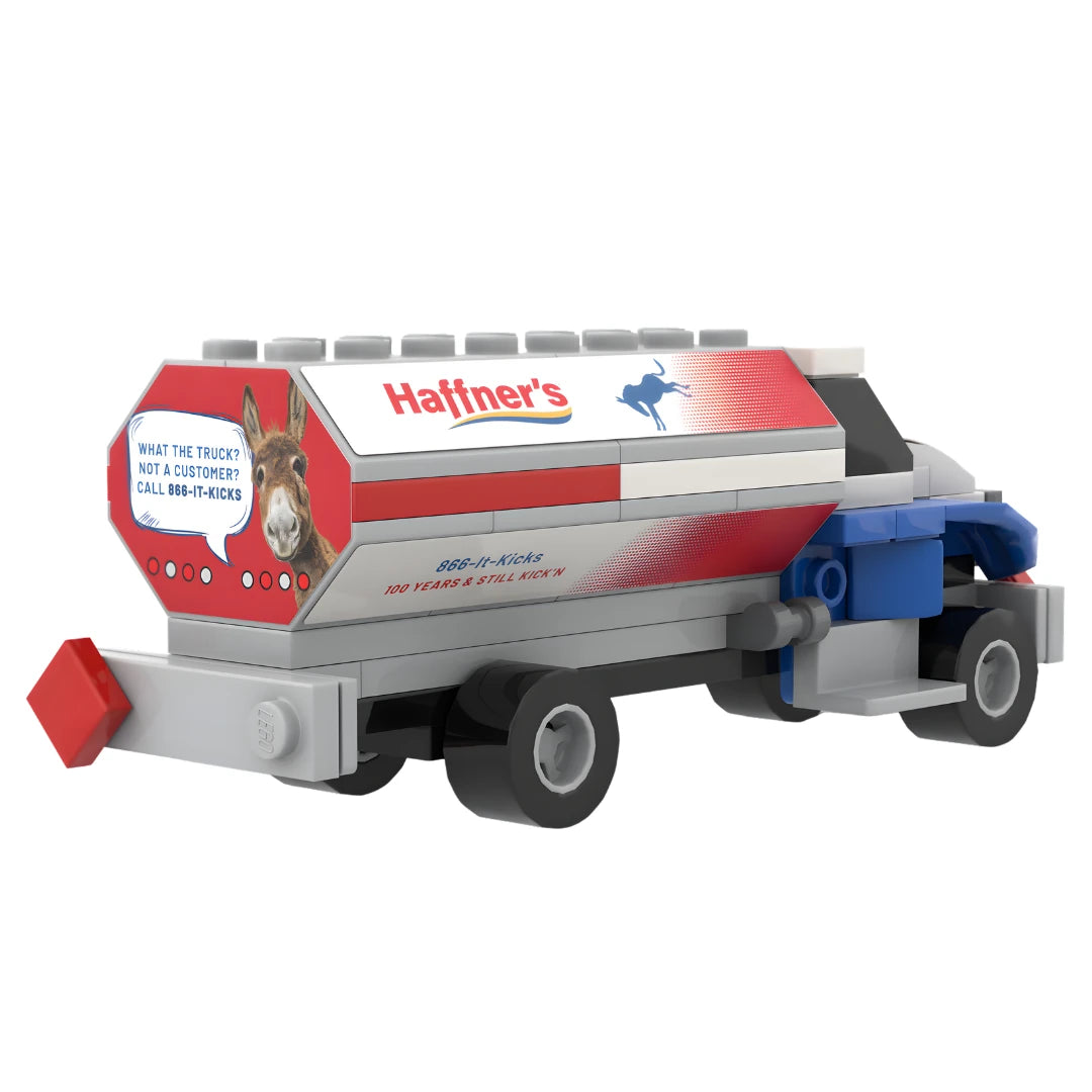Kostik Poloskin designed the decals to match the life-sized Haffner’s oil truck in miniature. Of course, Jack the donkey and Haffner’s “kick’n it” slogan are featured as “100 Years and Still Kick’n.”
