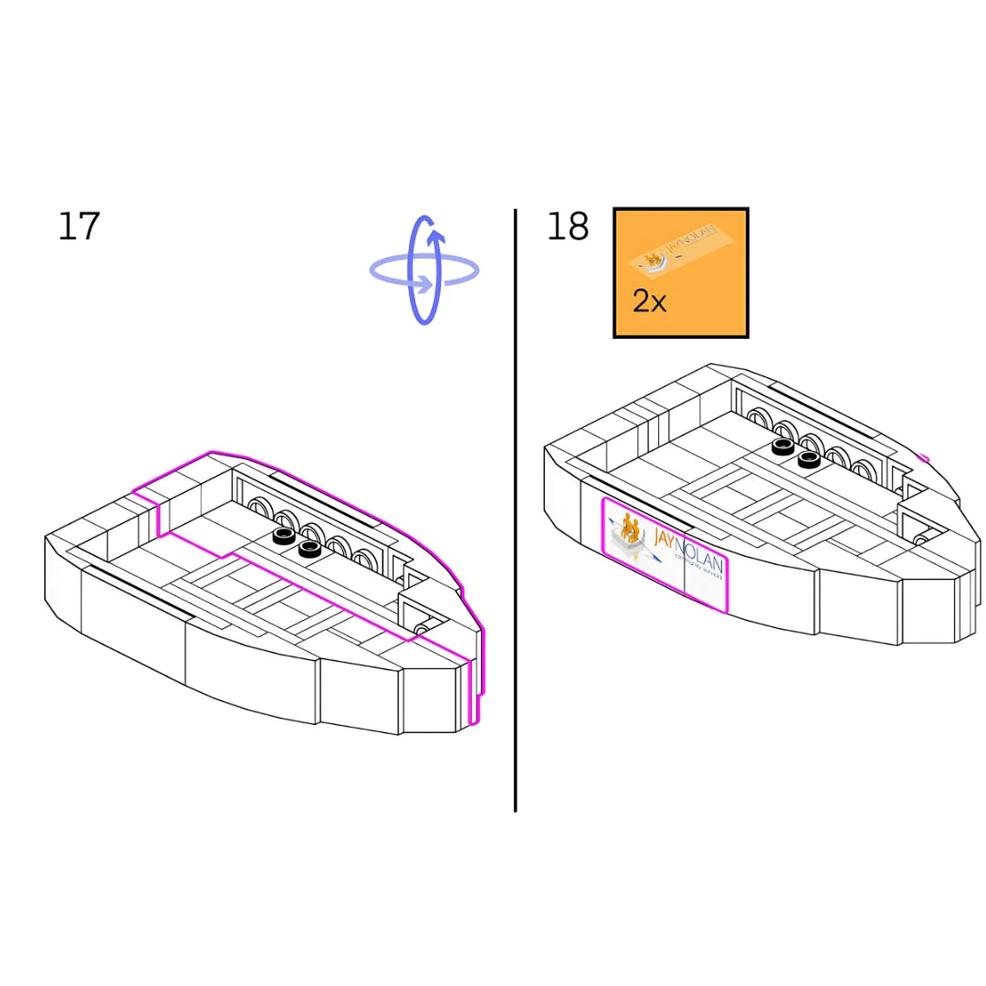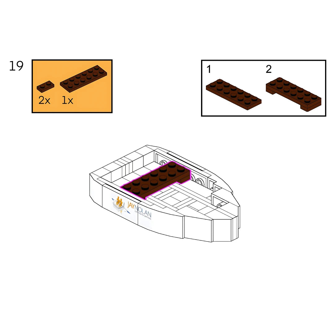 Playwell Bricks CEO Jason Pyett designed this rowboat twosome. He chuckles as he recalls a simple mistake he made in the design. “The rowers were facing the wrong direction! I was unaware that, in a rowboat, the rowers’ backs are pointed to the bow.”