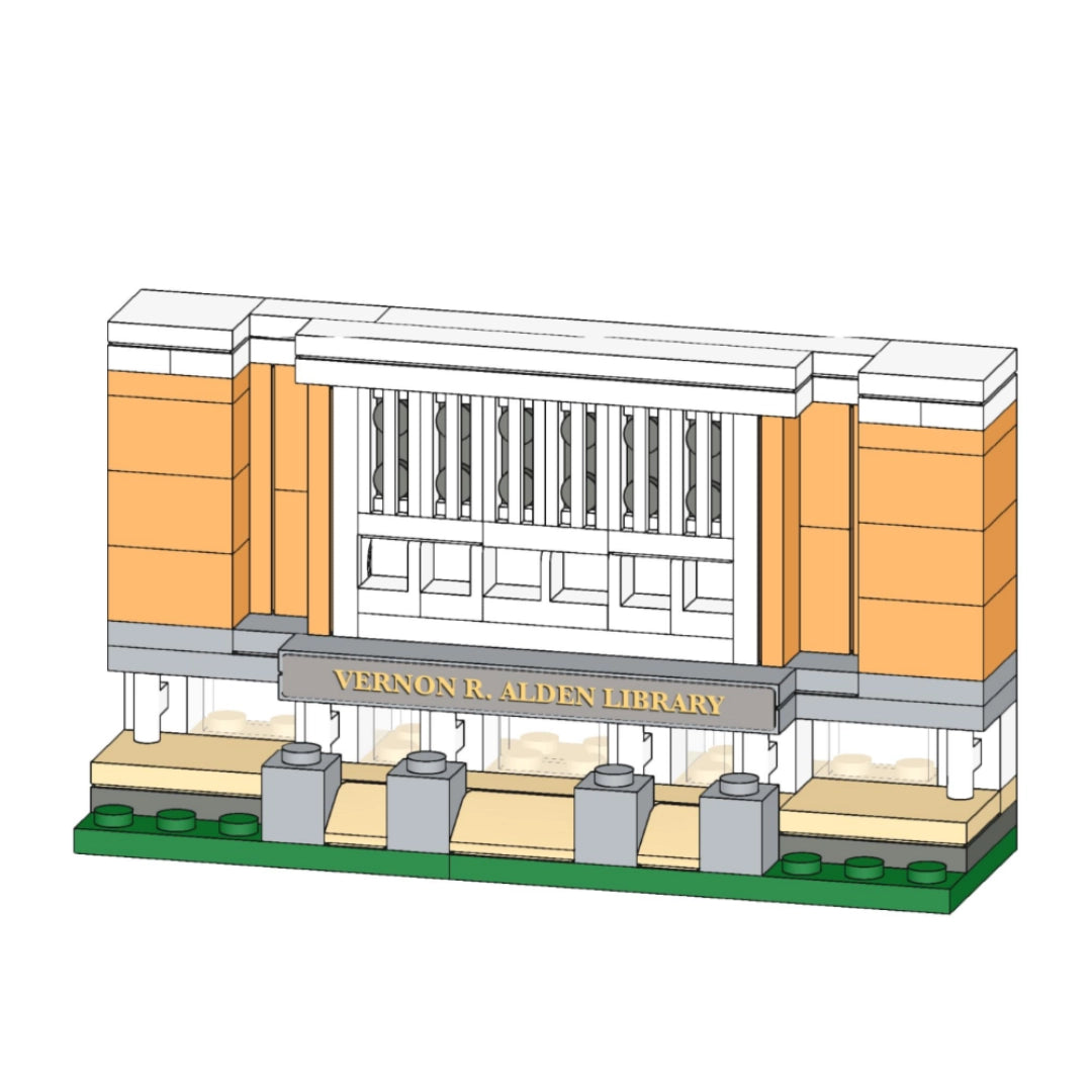 Ohio University in Ohio (U.S.A.) has had a long history since opening to students in 1809. In 1969, the original Vernon R. Alden Library opened, honouring the university’s 15th president. It was only a few short years later when construction began on the two wings of the library as it stands in 2025, making that original library structure something that would appeal to local history buffs. Which is why Ohio University Libraries commissioned a custom Playwell Bricks of that very structure.