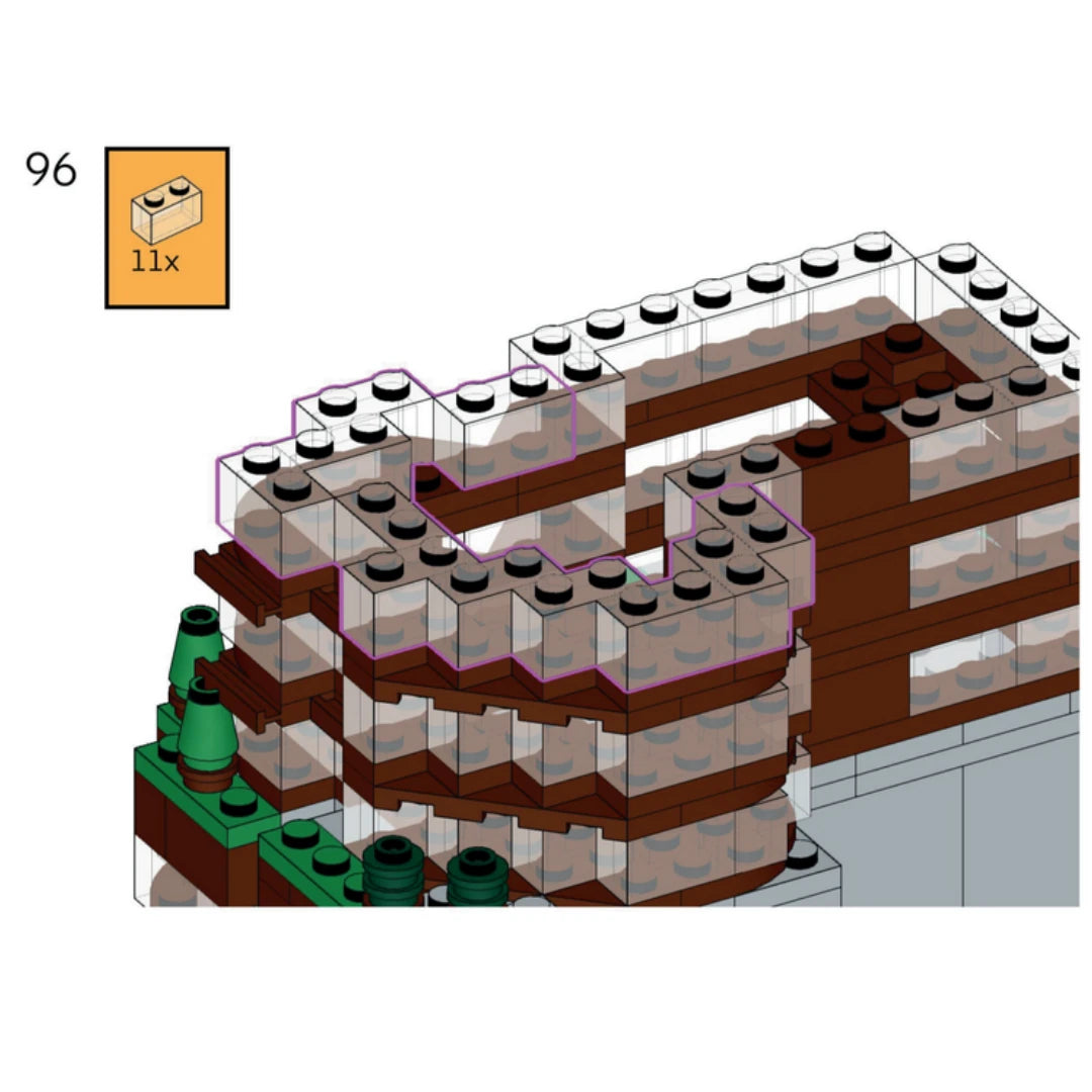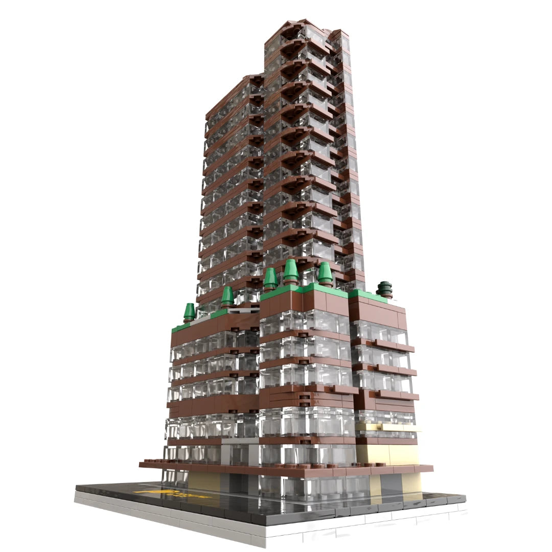 Garrett tackled this design with gusto. “One of my passions is designing architecture models. It was a pleasure to build a creative building like Parkline Place. I took on the challenge of capturing as much detail as possible within the limited piece count requested by the client. I was able to take my love for architecture and capture it to commemorate their latest creation,” he says.