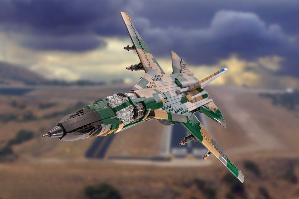 The Aardvark was also the trailblazer for variable-sweep wings, which have a realistic range of motion in our custom model, as well as afterburning turbofan engines, reproduced here with clever build techniques to faithfully capture the cylindrical shapes.