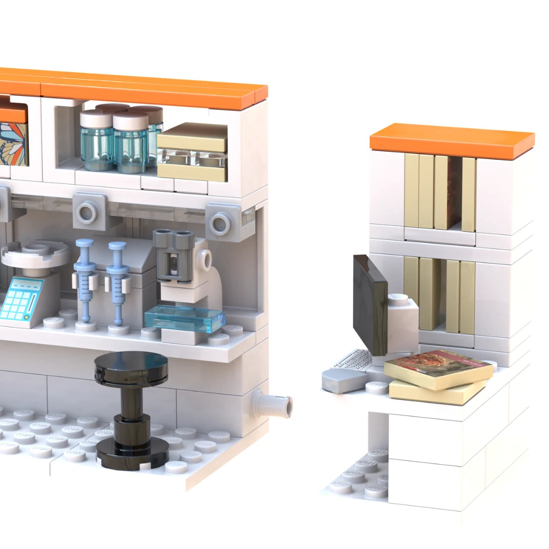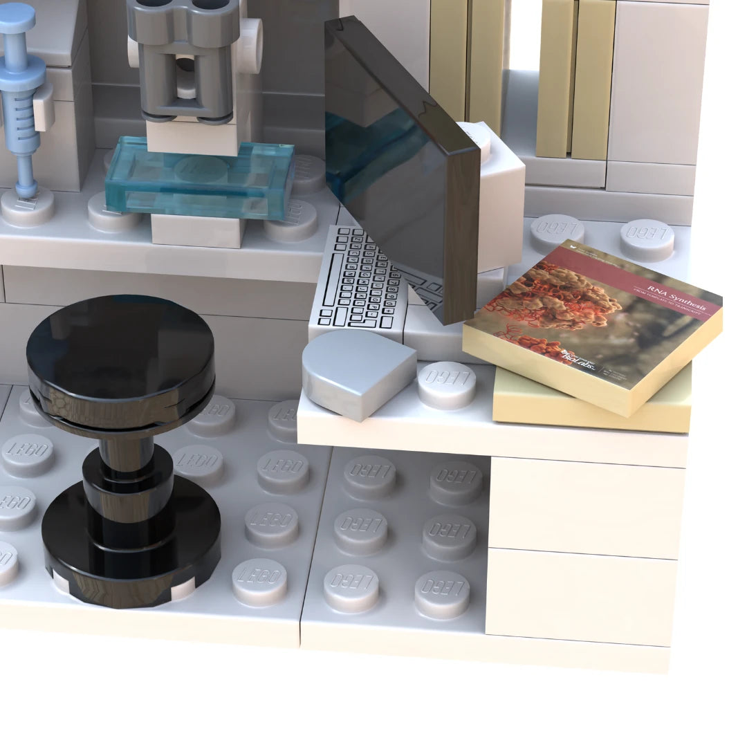 Calling on his own experiences in a lab setting, Playwell Bricks CEO Jason Pyett took on this design himself. Working from discussions with the Biolabs team and the photographs they sent, Jason worked at creating brick versions of their lab equipment.