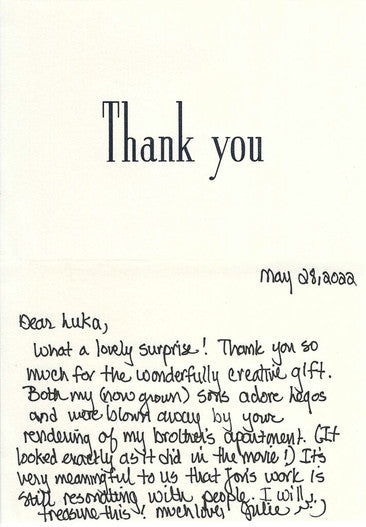 Luka’s project transcended typical construction, venturing into a narrative-rich exploration of Larson's life and work. Through careful selection of LEGO® bricks and thoughtful design, the essence of Larson’s New York City apartment was captured, reflecting the struggles, joys, and artistic fervor of the playwright's journey.