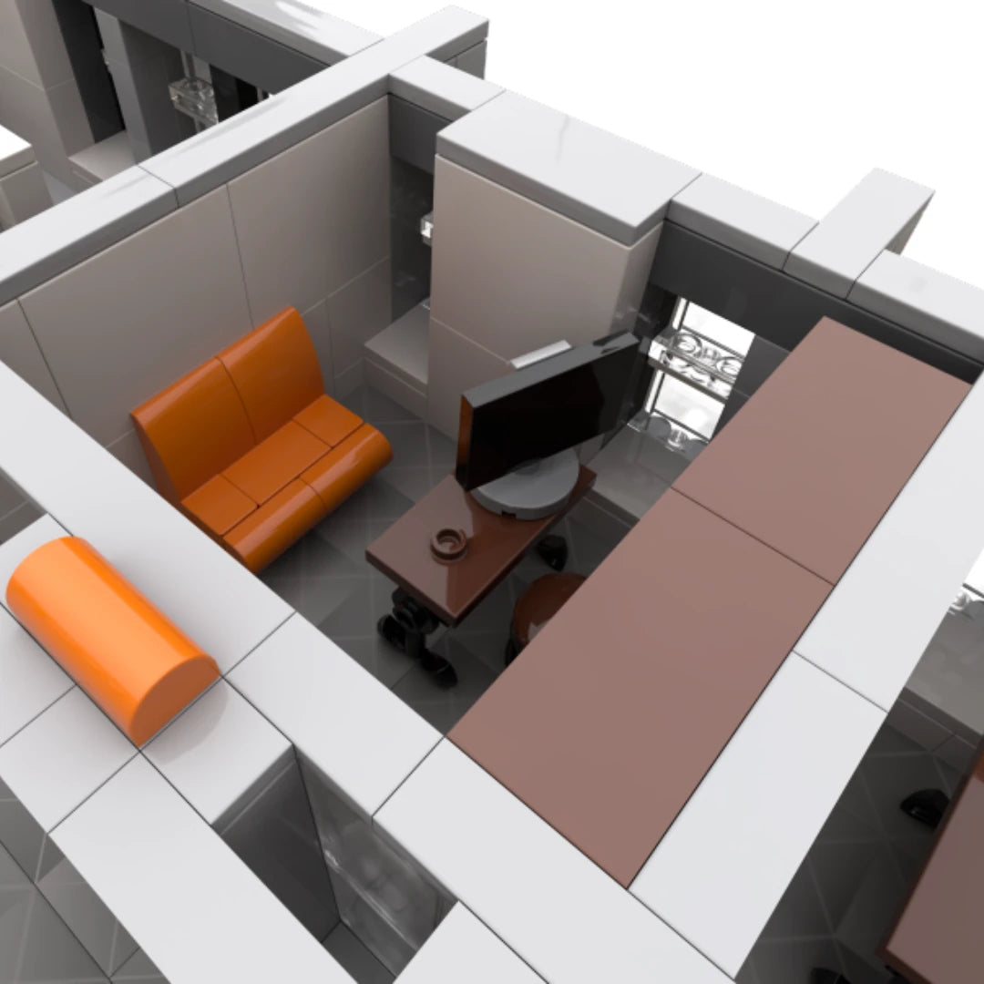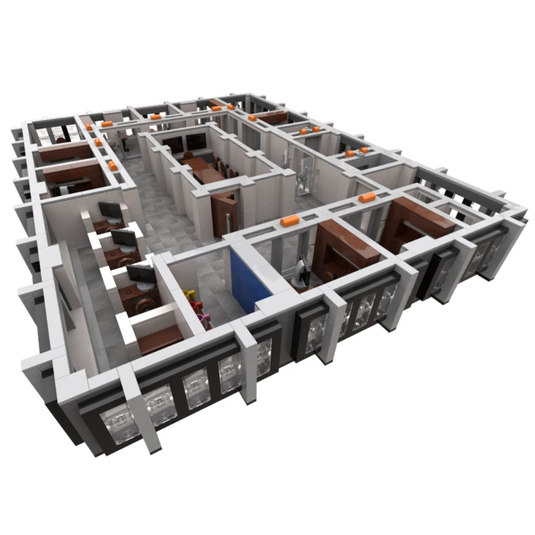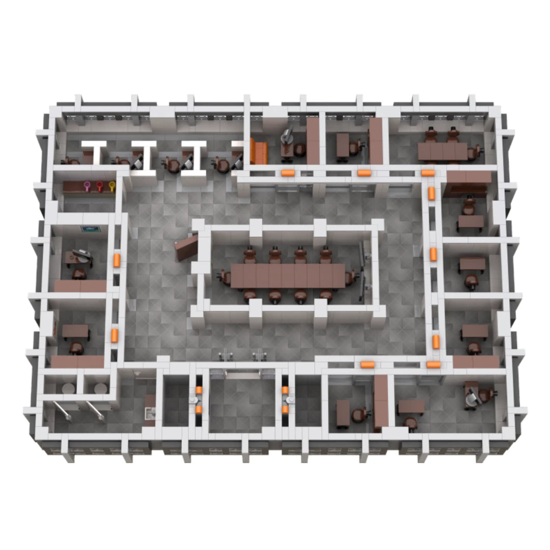 “This was a large and complex project,” Kostik tells me. “On the one hand, I had to respect size and part count limitations. On the other, I needed to leave space for minifigures to move in the space. The client gave me a list of must-have rooms (his boss’s office, the canteen, team offices, a large conference room), but I didn’t have an exact floor plan. So I had to improvise, redesign, and balance everything from scratch.”