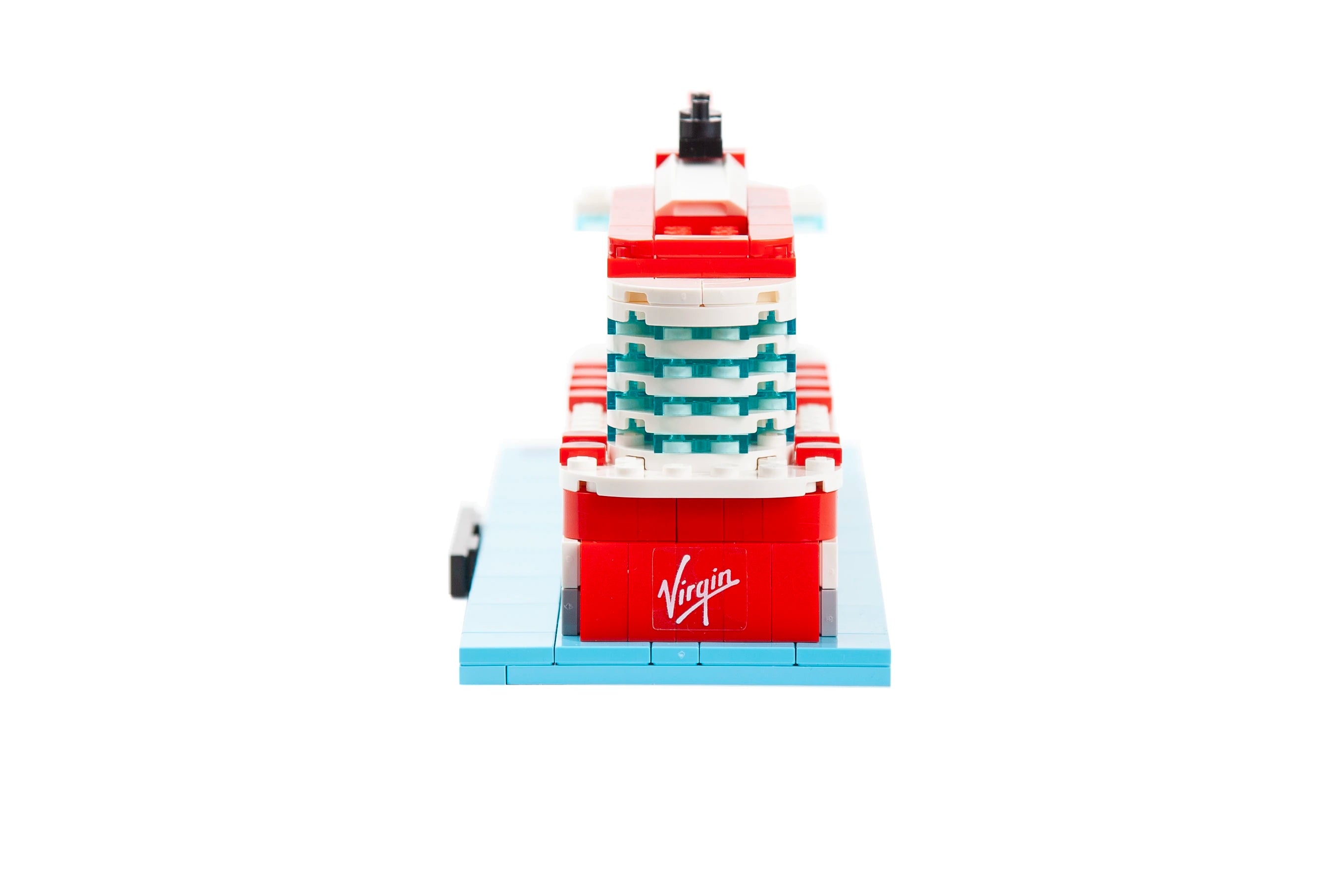 One of the newest ships in the Virgin Cruise fleet, Resilient Lady, was chosen to be immortalized in bricks. "We only had six weeks to put this together," says Pyett. "So I had to do the design quickly."