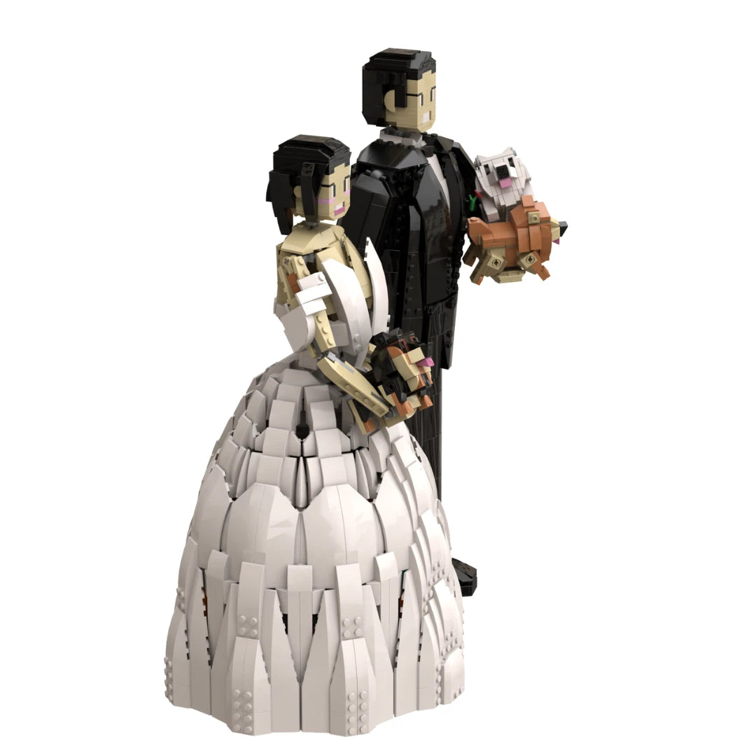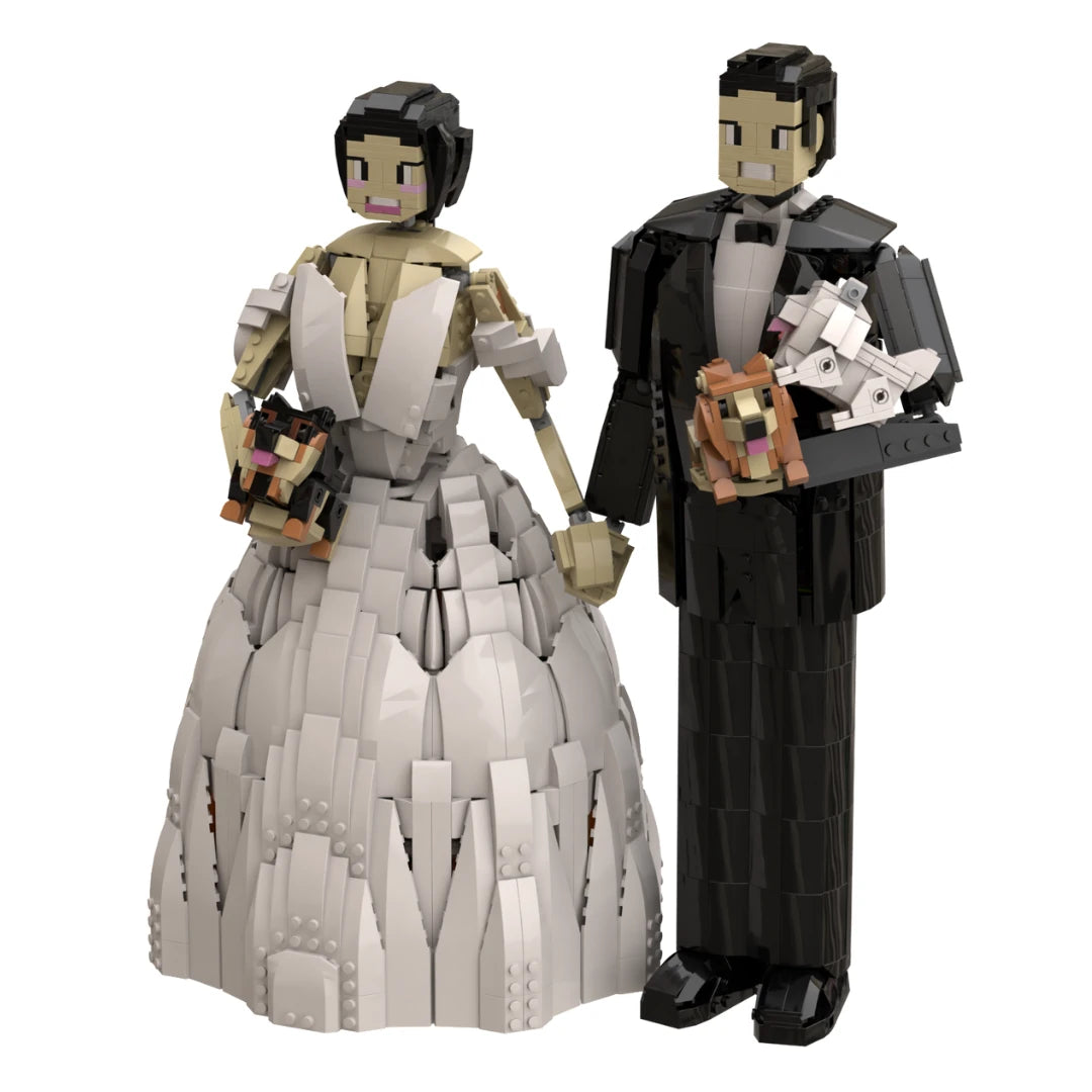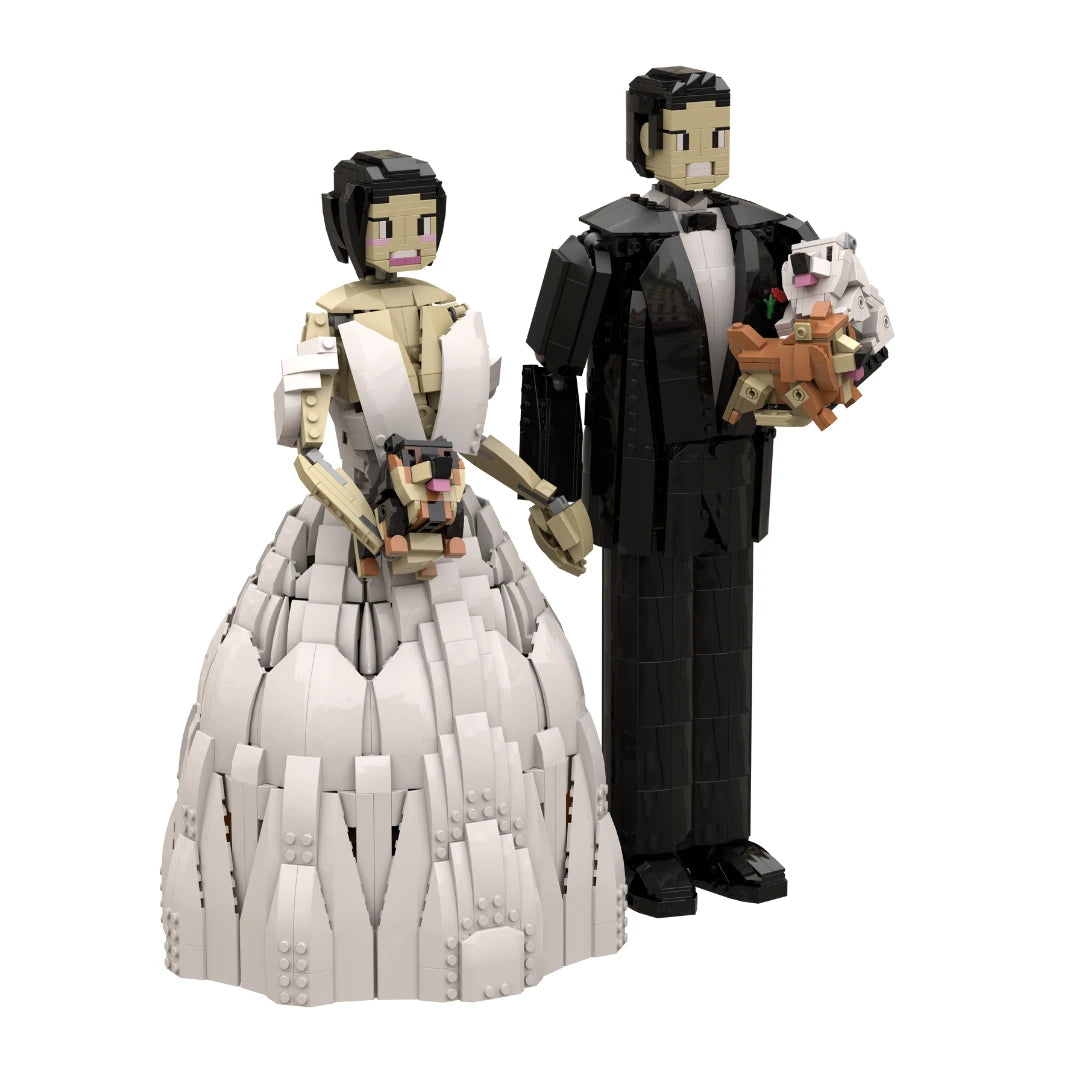 What’s the perfect gift to welcome your new brother-in-law to the family? Well, if you happen to be this freshly in-lawed client, you commission a custom Playwell Bricks set of the happy couple on their wedding day, with their beloved pups, of course.